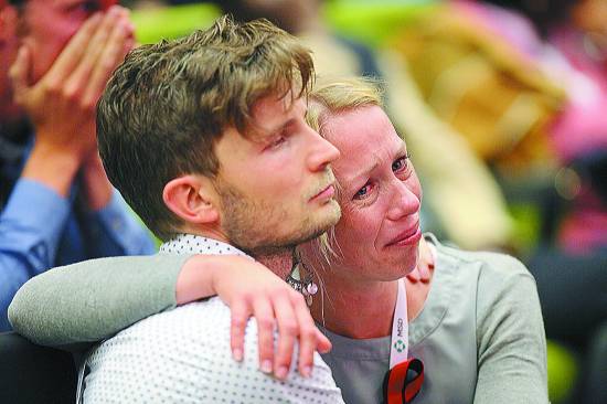 7月20日,在澳大利亞墨爾本,兩名與會(huì)代表在大會(huì)開幕式上相擁而泣。當(dāng)日,第20屆國(guó)際艾滋病大會(huì)在澳大利亞第二大城市墨爾本開幕,一萬(wàn)多名與會(huì)者在開幕式上集體悼念6名在馬航MH17航班墜毀事件中遇難的抗艾專家。新華社記者 徐儼儼攝