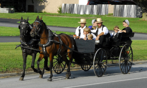 幾名阿米什人乘坐馬車出行