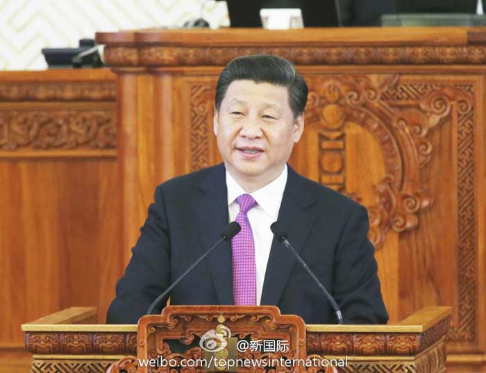 ???? 新華網(wǎng)北京8月22日電 據(jù)新華社“新國際”微博報道,習近平主席22日在蒙古國國家大呼拉爾發(fā)表演講時說,中國愿意為周邊國家提供共同發(fā)展的機遇和空間,歡迎大家搭乘中國發(fā)展的列車,搭快車也好,搭便車也好,我們都歡迎。(新華社記者鞠鵬攝)?