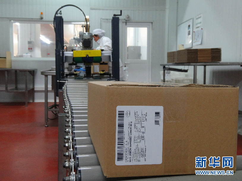 裝滿切片火腿的紙盒。我們可以看到,處于食品加工安全和衛(wèi)生的考慮,切片和裝盒是在兩個(gè)不同的房間里。