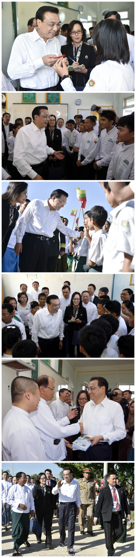 ??? 新華網(wǎng)北京11月14日電 據(jù)新華社“新國(guó)際”微博報(bào)道,李克強(qiáng)總理14日在內(nèi)比都第十四中學(xué)與緬甸青少年交流時(shí),勉勵(lì)他們更好地傳承中緬“胞波”友誼,讓中緬友好事業(yè)后繼有人。李克強(qiáng)說(shuō),中國(guó)政府明年將邀請(qǐng)100名緬甸青年赴中國(guó)訪問(wèn),還將增加對(duì)緬甸政府獎(jiǎng)學(xué)金名額,給緬甸學(xué)生赴華留學(xué)創(chuàng)造更多機(jī)會(huì)。
