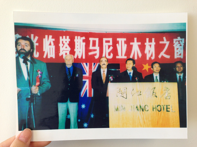 ????這是1999年習(xí)近平任福建省代省長(zhǎng)時(shí)出席塔斯馬尼亞之窗木材交易會(huì)時(shí)的照片(左三為吉姆·培根州長(zhǎng)),記錄下當(dāng)年兩位“父母官”為地方經(jīng)貿(mào)合作而出力的一幕。自我表揚(yáng)一下,記者為尋到這張照片,可是很花了番功夫。