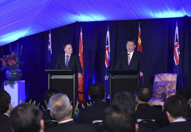 圖為習(xí)近平主席和新西蘭總理約翰·基會談后共同會見記者(攝影 李學(xué)仁)