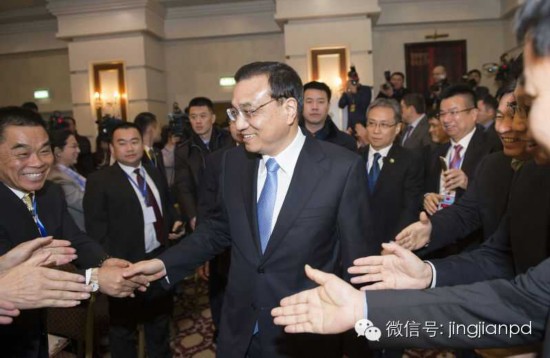 李克強參加中哈企業(yè)家委員會會議后,離開會場時與企業(yè)家們握手