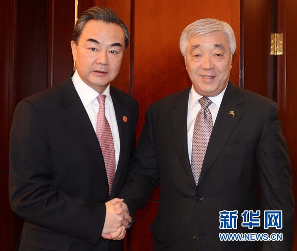 ??? 12月15日,陪同李克強(qiáng)總理訪問哈薩克斯坦的外交部長王毅應(yīng)約會見哈薩克斯坦外長伊德里索夫。 新華社記者 沙達(dá)提 攝