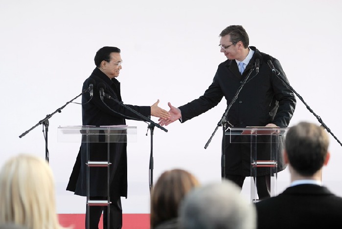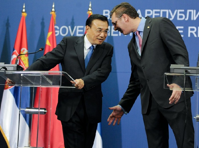李克強(qiáng)與塞爾維亞總理武契奇共見(jiàn)記者。中新社 劉震 攝