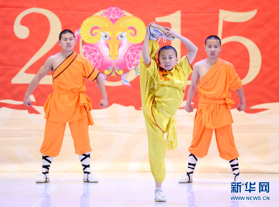 2月4日晚,在烏茲別克斯坦首都塔什干突厥宮,藝術(shù)家在表演中國武術(shù)和舞蹈。新華網(wǎng)記者 沙達提 攝