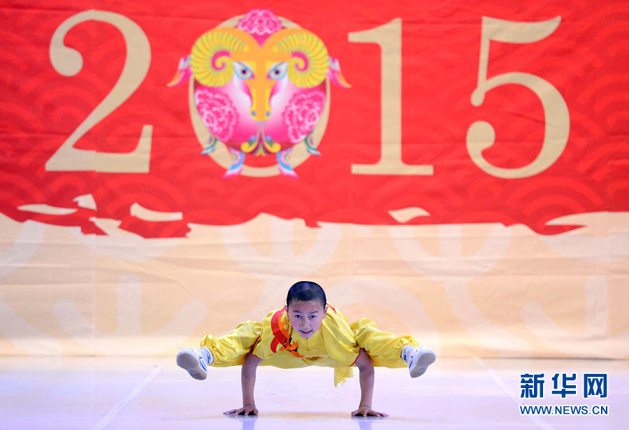 2月4日晚,在烏茲別克斯坦首都塔什干突厥宮,藝術(shù)家在表演中國武術(shù)和舞蹈。新華網(wǎng)記者 沙達提 攝