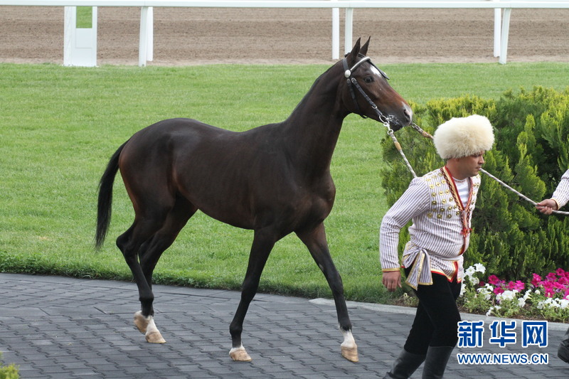 ???? 10匹汗血馬參加了決賽的角逐,經(jīng)過裸體和盛裝兩輪展示,名叫彼塔拉普雷克的淺黃色三歲公馬贏得桂冠。這匹來自個(gè)體馬場的馬主人叫霍賈雷耶夫。它為主人贏得一輛日產(chǎn)高級(jí)越野車。馬選美從4月初開始舉行普選。在第一輪中,20匹純種汗血馬從來自全國各馬場的50多匹中脫穎而出,第二輪又淘汰了一半,剩下10匹參加今天的決賽。