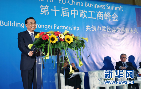 當(dāng)?shù)貢r(shí)間6月29日,國(guó)務(wù)院總理李克強(qiáng)在布魯塞爾與歐盟委員會(huì)主席容克共同出席中歐工商峰會(huì),并發(fā)表主旨演講。新華社記者 姚大偉攝