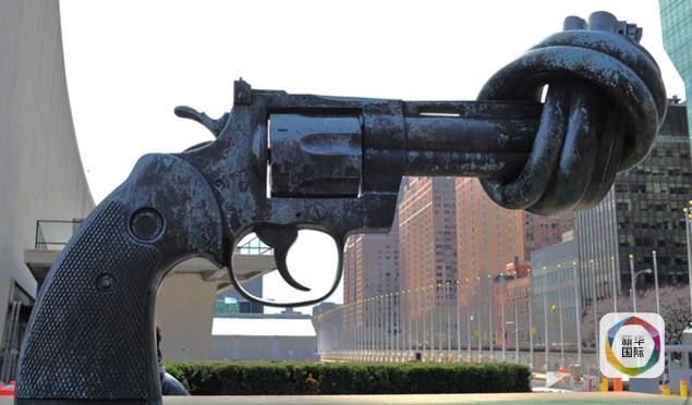 盧森堡贈(zèng)給聯(lián)合國(guó)的雕塑“打結(jié)的手槍”。