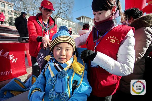 ????2015年12月21日,在甘肅平?jīng)?,志愿者給孩子穿上“壹基金溫暖包”內(nèi)的防寒衣物。(楊昕攝影)
