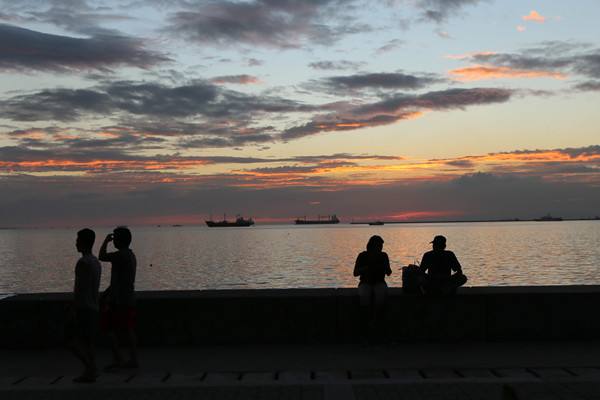 11月15日,人們在馬尼拉灣畔觀看日落。 (新華社記者李鵬攝)