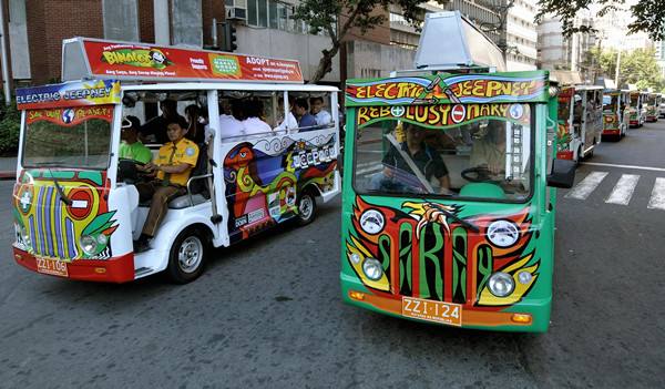 馬尼拉街頭的“吉普尼”電瓶車。(新華社/法新)