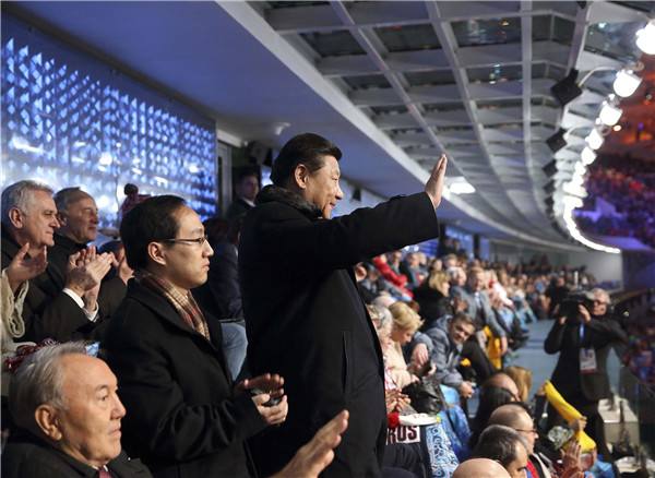 2014年2月6日,習近平抵達俄羅斯索契,應俄羅斯總統(tǒng)普京邀請,出席第二十二屆冬季奧林匹克運動會開幕式。這是中國國家元首首次出席在境外舉行的大型國際體育賽事開幕式。