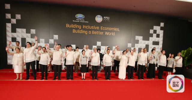 11月18日,國家主席習(xí)近平在菲律賓馬尼拉出席亞太經(jīng)合組織第二十三次領(lǐng)導(dǎo)人非正式會議歡迎晚宴。這是晚宴前,習(xí)近平同各成員經(jīng)濟體領(lǐng)導(dǎo)人、代表及配偶合影。(新華社記者姚大偉攝)