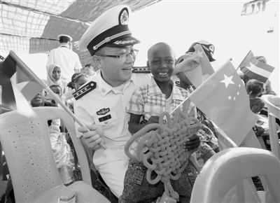 8月27日,正在蘇丹進(jìn)行友好訪問(wèn)的中國(guó)海軍152艦艇編隊(duì)派出的小分隊(duì),慰問(wèn)非洲婦女兒童基金會(huì)蘇丹紅海州分會(huì)孤兒院的孩子。人民視覺(jué)