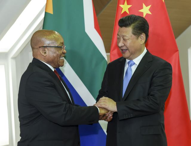 2015年7月9日,習(xí)近平在俄羅斯烏法會見南非總統(tǒng)祖馬。習(xí)近平指出: