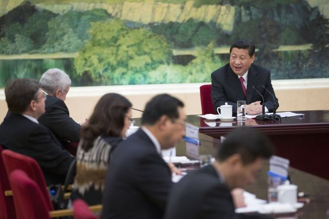 2013年3月19日,習(xí)近平接受金磚國家媒體聯(lián)合采訪。(新華社記者蘭紅光攝)