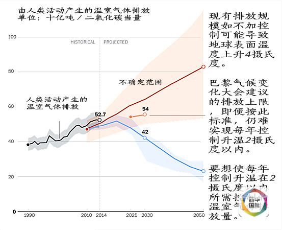 根據(jù)聯(lián)合國環(huán)境規(guī)劃署和世界資源研究所等機構的數(shù)據(jù),全球由人類活動引發(fā)的溫室氣體排放量呈上升趨勢,2012年接近500億噸二氧化碳當量,2014年達到527億噸二氧化碳當量。