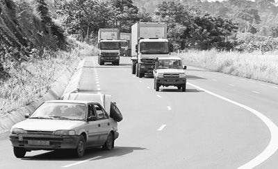 中國(guó)企業(yè)修建的高速公路穿過(guò)剛果(布)原始熱帶雨林。記者 苑基榮攝