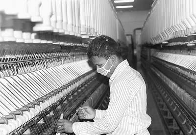 天利紡紗(毛里求斯)有限公司紡紗廠(chǎng)的外籍員工在工作。記者 倪 濤攝
