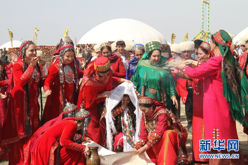 3月21日,在土庫曼斯坦首都阿什哈巴德,現(xiàn)場上演結(jié)婚場面。新華社記者盧敬利 攝