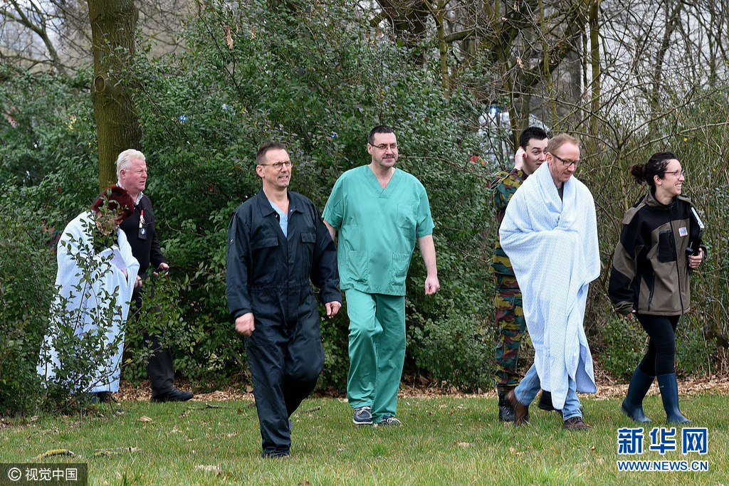 ??? 當(dāng)?shù)貢r(shí)間2016年3月24日,比利時(shí)布魯塞爾, Koningin Astrid-Reine Astrid 軍事醫(yī)院發(fā)生天然氣泄漏,民眾緊急疏散,一部分在日前布魯塞爾恐襲中受傷的民眾在此接受治療。圖片來源:視覺中國