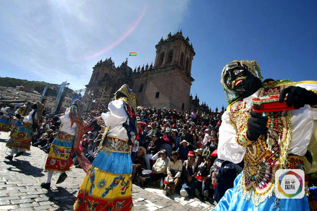 2011年7月7日,在秘魯庫斯科,人民在街頭表演,慶祝印加遺址馬丘比丘發(fā)現(xiàn)百年。新華社/法新