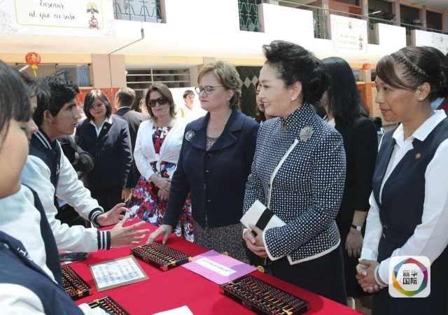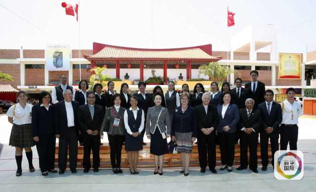 ??? 彭麗媛抵達(dá)時,秘魯總統(tǒng)夫人蘭格和學(xué)校校長在下車處迎接,校長為彭麗媛獻(xiàn)上鮮花。若望二十三世秘中學(xué)校創(chuàng)辦于1962年,是從幼兒園到中學(xué)教育的全日制學(xué)校,也是秘魯乃至南美洲最具影響的華文學(xué)校之一。