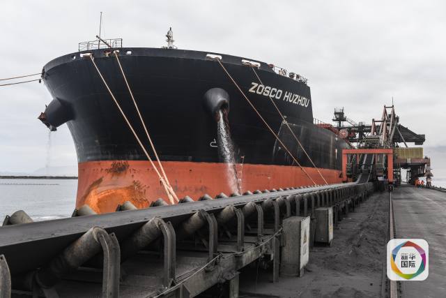 寧波遠洋公司的貨輪正在裝運鐵礦粉。(新華社記者申宏攝)