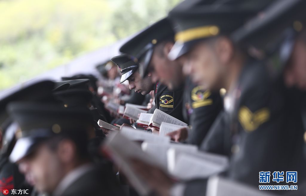 當(dāng)?shù)貢r間2017年5月18日,土耳其安卡拉,在憲兵和海岸警衛(wèi)學(xué)院體育場,土耳其憲兵參加集體讀書活動,打破“最多人一起讀書”吉尼斯紀(jì)錄,慶祝憲兵部成立178周年。包括土耳其憲兵、海岸警衛(wèi)隊及其家人在內(nèi)等5754人參加了這一集體活動。(圖片來源:東方IC)