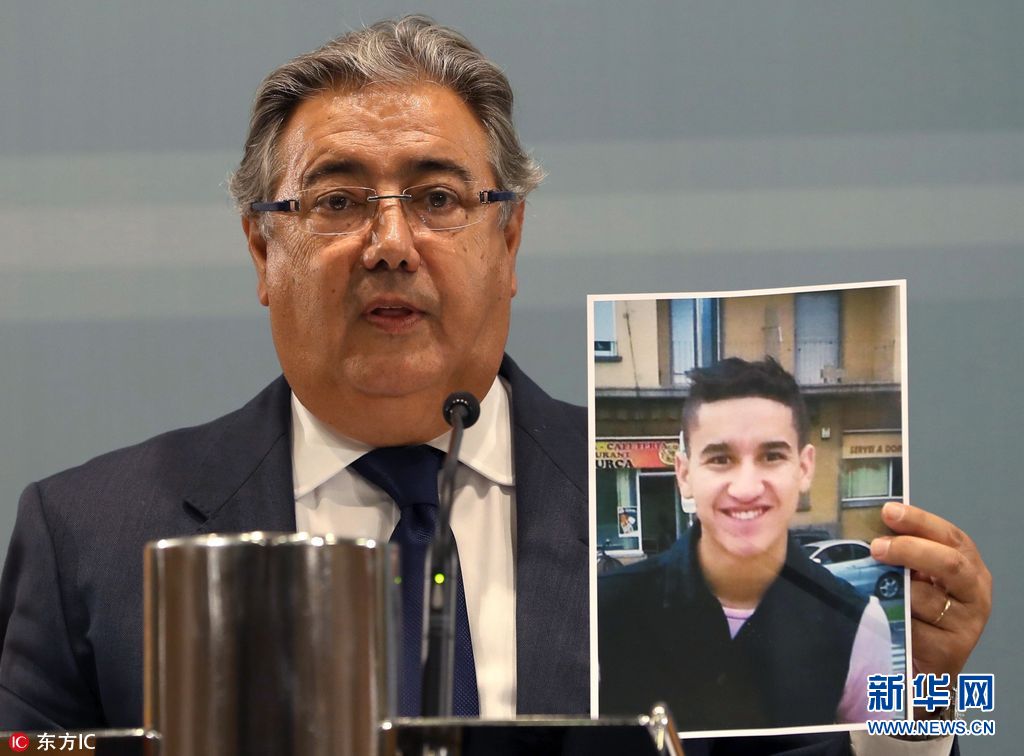 當(dāng)?shù)貢r間2017年8月21日,西班牙內(nèi)政部長展示巴塞羅恐襲案嫌犯照片,尤尼斯·阿布雅各布。