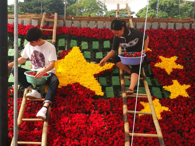 這是花匠們?cè)跒樵街杏颜x宮落成移交儀式作準(zhǔn)備。新華社記者侯麗軍攝