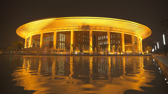河內(nèi)西南部開(kāi)發(fā)區(qū)黎光道188號(hào),中方援建的越中友誼宮坐落于此。這座建筑呈現(xiàn)蓮花造型,外部四角布有水池,營(yíng)造出一種出水芙蓉的意境。白色的立柱環(huán)抱著柚木色的主墻,典雅精致。外圓而內(nèi)方的設(shè)計(jì),象征和諧、團(tuán)結(jié)與圓滿,傳遞中越友誼長(zhǎng)存、世代友好的深意。