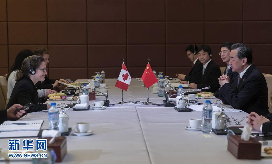 王毅會(huì)見(jiàn)加拿大外長(zhǎng)弗里蘭
