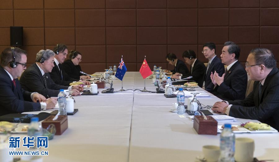 11月11日,外交部長王毅在越南峴港應約會見新西蘭副總理兼外長彼得斯。 新華社記者 費茂華 攝