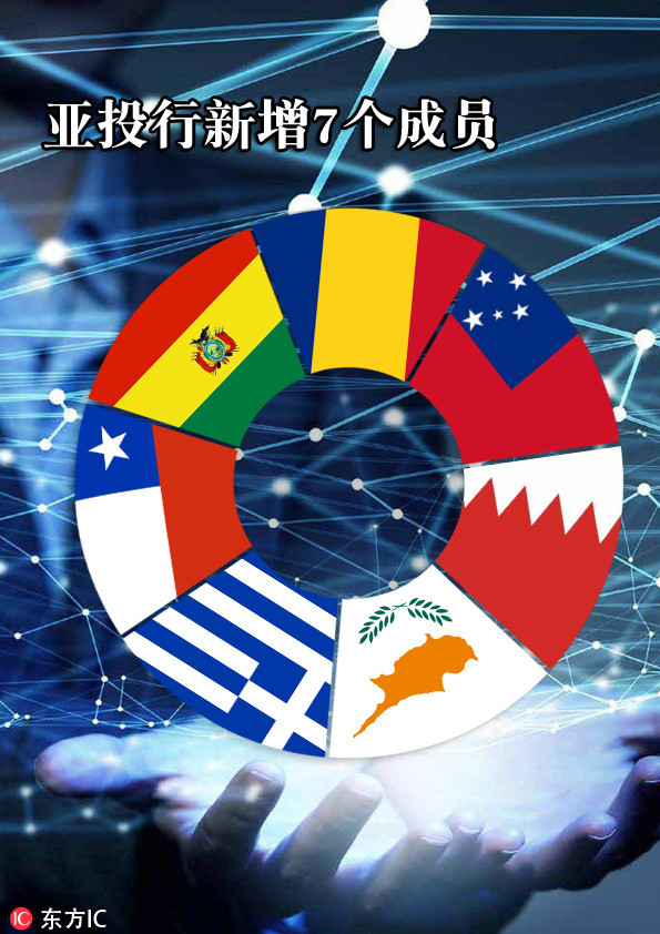 【二度“擴(kuò)圍”】2017年5月13日,亞投行批準(zhǔn)新一批7個意向成員加入,成員總數(shù)擴(kuò)大到77個。此次新增的7個成員包括巴林、塞浦路斯、薩摩亞3個域內(nèi)成員和玻利維亞、智利、希臘、羅馬尼亞4個非域內(nèi)成員。