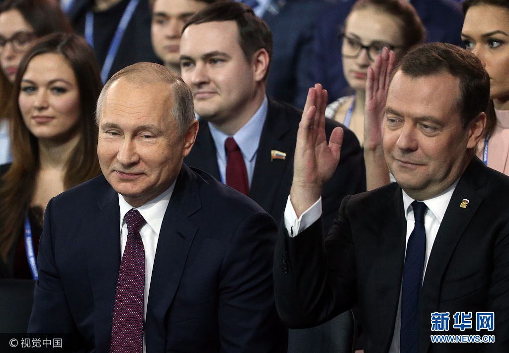當(dāng)?shù)貢r間2017年12月23日,俄羅斯莫斯科,俄羅斯總統(tǒng)普京出席第17次統(tǒng)一俄羅斯黨大會。(圖片來源:視覺中國)