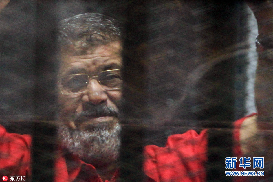 當(dāng)?shù)貢r間2016年6月18日,埃及開羅,埃及前總統(tǒng)穆爾西在獄中。據(jù)俄羅斯衛(wèi)星網(wǎng)2017年12月31日報道,埃及前總統(tǒng)穆爾西因侮辱法庭被開羅刑事法庭判處3年有期徒刑。(圖片來源:東方IC)