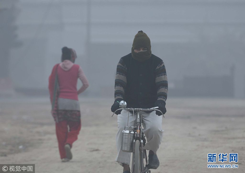 當?shù)貢r間1月2日,印度新德里遭遇冷空氣及強霧霾天氣,能見度低。(圖片來源:視覺中國)