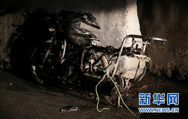 這是1月4日在阿富汗首都喀布爾爆炸現(xiàn)場(chǎng)拍攝的一輛受損的摩托車。新華社發(fā)(賈韋德·奧米德攝)