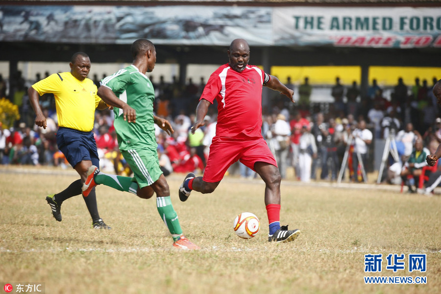 1月20日,利比里亞首都蒙羅維亞,利比里亞當(dāng)選總統(tǒng)、前世界足球先生喬治-維阿參加慈善足球比賽,率領(lǐng)維阿全明星隊對戰(zhàn)利比里亞武裝部隊士兵隊。喬治-維阿在去年12月27日當(dāng)選利比里亞新一任總統(tǒng),并將于2018年1月22日就職。(圖片來源:東方IC)