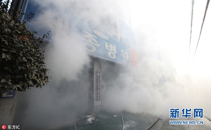 韓國(guó)慶尚南道密陽(yáng)市一家醫(yī)院當(dāng)?shù)貢r(shí)間26日上午發(fā)生火災(zāi)。新華網(wǎng)發(fā)