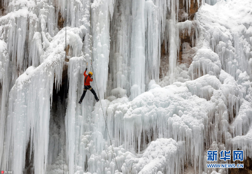 當?shù)貢r間1月26日,伊朗Meygun,攀巖愛好者在Meygun冰上攀巖俱樂部挑戰(zhàn)冰瀑攀巖。據(jù)悉,Meygun冰上攀巖俱樂部每年都會迎來數(shù)千專業(yè)攀巖人士以及學生。(圖片來源:東方IC)