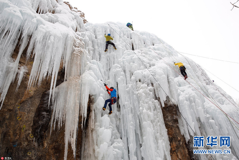 當(dāng)?shù)貢r(shí)間1月26日,伊朗Meygun,攀巖愛好者在Meygun冰上攀巖俱樂部挑戰(zhàn)冰瀑攀巖。據(jù)悉,Meygun冰上攀巖俱樂部每年都會(huì)迎來數(shù)千專業(yè)攀巖人士以及學(xué)生。(圖片來源:東方IC)