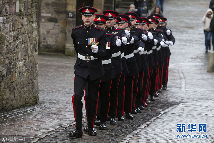 英國皇家炮兵在愛丁堡城堡鳴響21響禮炮 紀念女王登基66周年