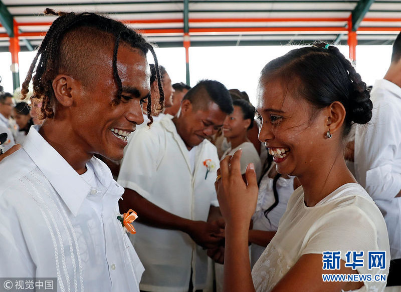 2月13日,菲律賓蘇比克,情人節(jié)前夕,當?shù)嘏e辦集體婚禮。(圖片來源:視覺中國)