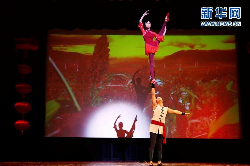 3月2日,在美國密歇根州底特律市,廣東省藝術(shù)團(tuán)的演員在2018年“歡樂春節(jié)--祖國陪你過年”活動中表演雜技《肩上芭蕾》。新華網(wǎng)發(fā)(圖片由中國駐芝加哥總領(lǐng)館提供)