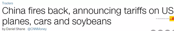 CNN發(fā)表題為《中國還擊,對美國進口的飛機、汽車和大豆加征關稅》的文章。